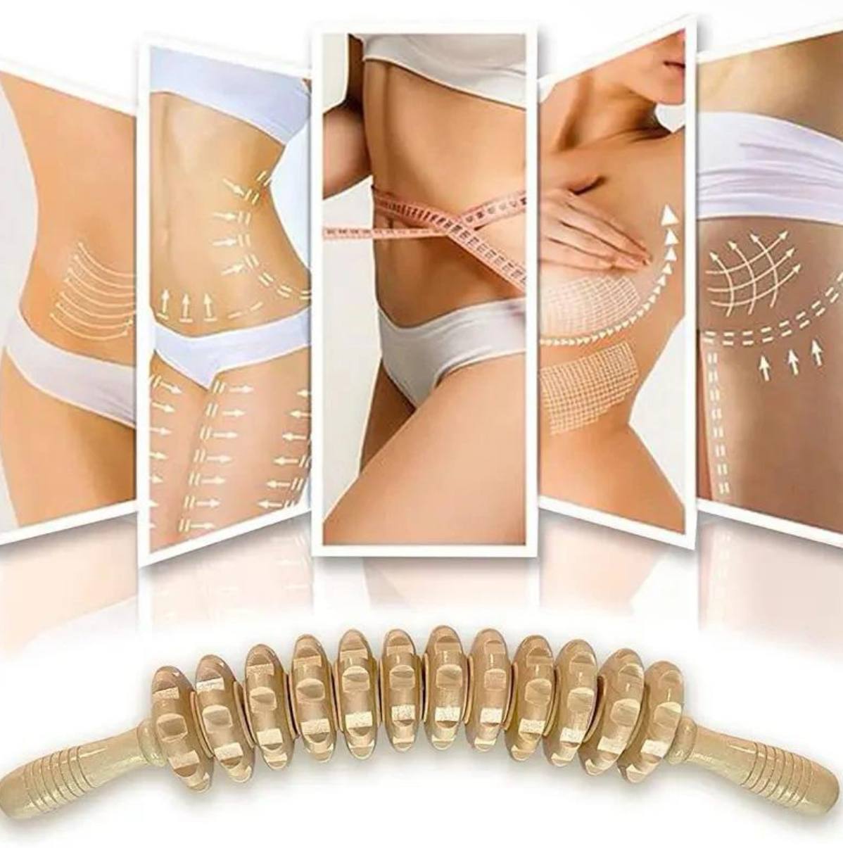 Гнучка форма з 12 роликами: Завдяки вигнутій формі та кількості роликів, масажер ефективно охоплює великі ділянки тіла та дозволяє виконувати масаж різних зон, таких як стегна, живіт, сідниці та спина.